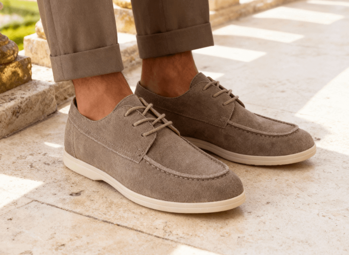 Zero break-in needed. The suede is smooth and the sole is flexible without feeling cheap. Works with shorts or tailored pants.